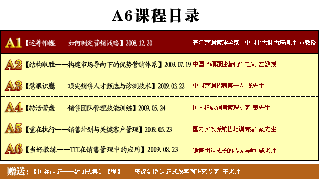 本系列课程均由中国十佳培训师、著名大学MBA导师、知名企业高管、等等国内营销各领域特聘专家亲自讲授,与您分享全球营销管理经典案例和跨国公司实操经验,传授极具操作性的工具和方法,为指点营销管理迷津。